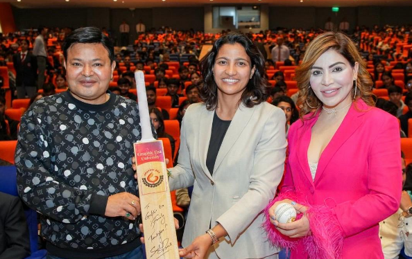 ग्राफिक एरा में वर्ल्ड चैम्पियन स्नेह राणा पर फूलों की बारिश
