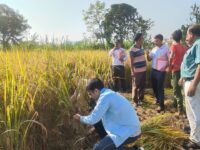 धान के फसल कटाई प्रयोग निरीक्षण दौरान डीएम सविन बंसल ने दरांति उठा कृषकों संग की फसल कटाई