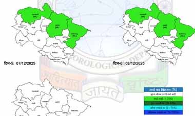 जो पूर्वानुमान मौसम विभाग ने जारी किया है, उसके अनुसार इन तीन जिलों के 3,200 मीटर से ऊंचाई वाले स्थानों पर बर्फबारी होगी। इन जिलों के निचले इलाकों में हल्की से बहुत हल्की बारिश की संभावना भी मौसम विभाग ने जताई है। मौसम विभाग ने ये भी कहा कि राज्य के शेष 10 जिलों में मौसम शुष्क रहेगा। जो पूर्वानुमान जारी किया गया है उसके अनुसार शनिवार 6 दिसंबर को मौसम शुष्क रहेगा। उसके बाद रविवार 7 दिसंबर और सोमवार 8 दिसंबर को फिर से मौसम का बदला मिजाज हावी रहेगा। रविवार 7 दिसंबर को फिर से उत्तरकाशी, चमोली और पिथौरागढ़ में बारिश और बर्फबारी होगी। फिर मौसम का यही पैटर्न सोमवार 8 दिसंबर को भी रिपीट होगा। यानी बारिश और बर्फबारी होगी। उसके बाद मंगलवार यानी 9 दिसंबर को फिर से मौसम शुष्क रहेगा। लेकिन ये बारिश और बर्फबारी ठंड को बढ़ाएगी।